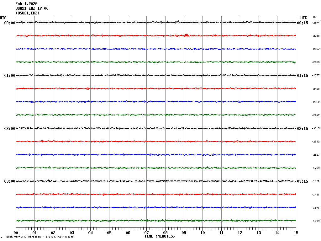 In questa pagina sono visualizzate le tracce delle componenti verticali registrate nelle ultime 24 ore ad alcune stazioni sismiche OSU-CT, ubicate (vedi mappa) nell'area del centro storico di Catania. HNZ indica la componente verticale dell'accelerometro mentre EHZ la componente verticale del velocimetro. In ogni schermata sono rappresentate 4 ore di registrazione. Le schermate corrispondenti alle diverse fasce orarie possono essere selezionate dalla tabella riportata in alto. Ogni riga rappresenta 15 minuti di registrazione e ogni minuto è separato dalle linee verticali. Gli orari sono espressi in UTC. Pertanto per ottenere l'ora locale occorre aggiungere 1 ora quando è in vigore l'ora solare o 2 ore quando è in vigore l'ora legale.