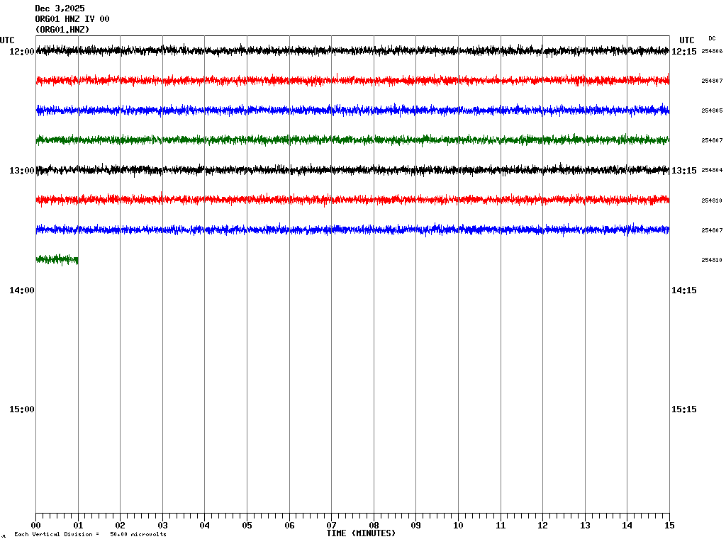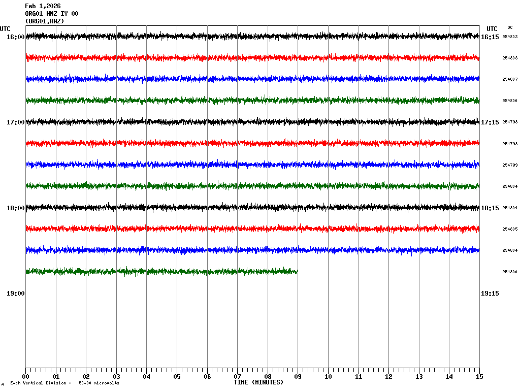 This page displays the seismic traces recorded in the last 24 hours at the stations of some Urban Seismic Observatories in Sicily. ONO01 is located in the Municipality of Noto, ORG01 is located in the Municipality of Ragusa. EHZ indicates the vertical component of the velocimeter while HNZ indicates the vertical component of the accelerometer. Each screen shows 4 hours of recording. The screens corresponding to the different time bands can be selected from the table above. Each line represents 15 minutes of recording and each minute is separated by vertical lines. Times are expressed in UTC. Therefore to get local time you need to add 1 hour when standard time is in effect or 2 hours when daylight saving time is in effect. |