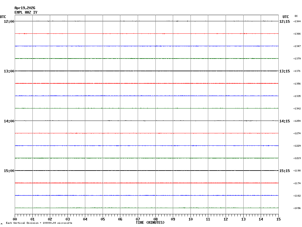 In questa pagina sono visualizzate le tracce registrate nelle ultime 24 ore ad alcune stazioni sismiche della rete permanente INGV-OE ubicate nell'area vulcanica etnea e delle Isole Eolie. In ogni schermata sono rappresentate 4 ore di registrazione. Le schermate corrispondenti alle diverse fasce orarie possono essere selezionate dalla tabella riportata in alto. Ogni riga rappresenta 15 minuti di registrazione e ogni minuto è separato dalle linee verticali. Gli orari sono espressi in UTC. Pertanto per ottenere l'ora locale occorre aggiungere 1 ora quando è in vigore l'ora solare o aggiungere 2 ore quando è in vigore l'ora legale.