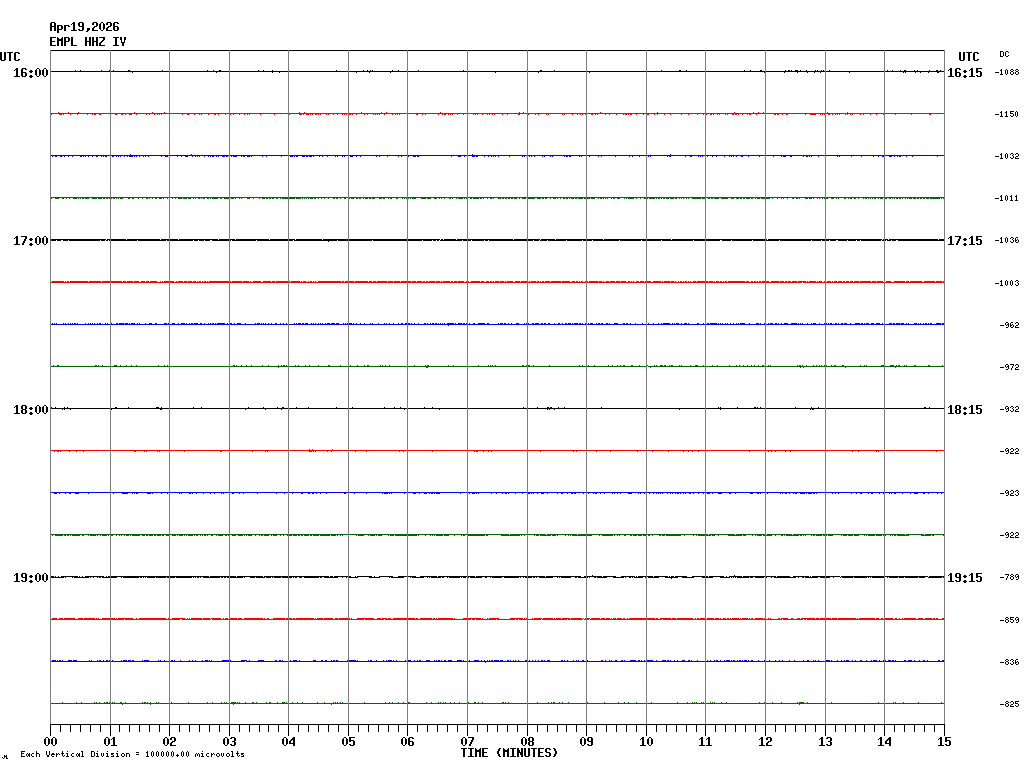 In questa pagina sono visualizzate le tracce registrate nelle ultime 24 ore ad alcune stazioni sismiche della rete permanente INGV-OE ubicate nell'area vulcanica etnea e delle Isole Eolie. In ogni schermata sono rappresentate 4 ore di registrazione. Le schermate corrispondenti alle diverse fasce orarie possono essere selezionate dalla tabella riportata in alto. Ogni riga rappresenta 15 minuti di registrazione e ogni minuto è separato dalle linee verticali. Gli orari sono espressi in UTC. Pertanto per ottenere l'ora locale occorre aggiungere 1 ora quando è in vigore l'ora solare o aggiungere 2 ore quando è in vigore l'ora legale.