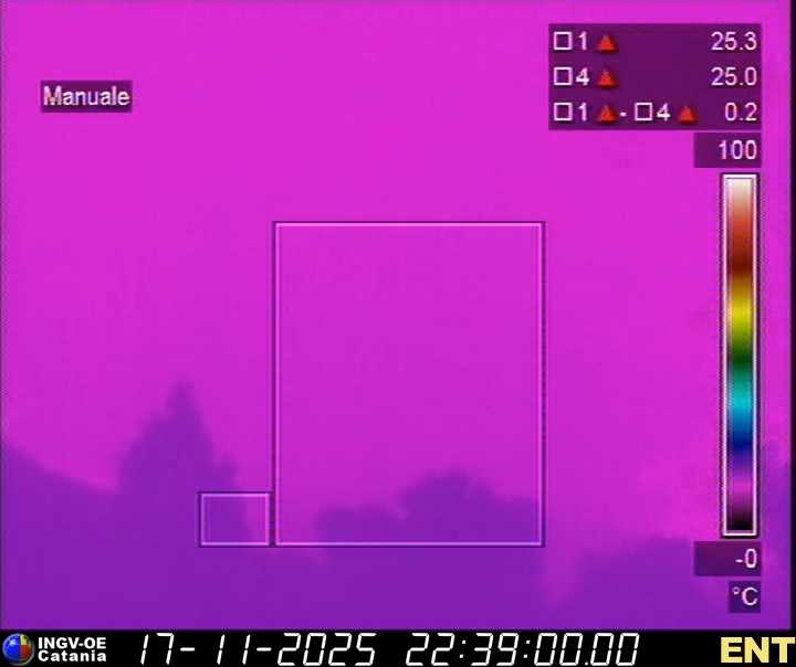 In questa pagina sono visualizzate le immagini provenienti dalle stazioni di video sorveglianza vulcanica ubicate nell'area vulcanica etnea. Gli orari sono espressi in UTC. Pertanto per ottenere l'ora locale occorre aggiungere 1 ora quando è in vigore l'ora solare o aggiungere 2 ore quando è in vigore l'ora legale.